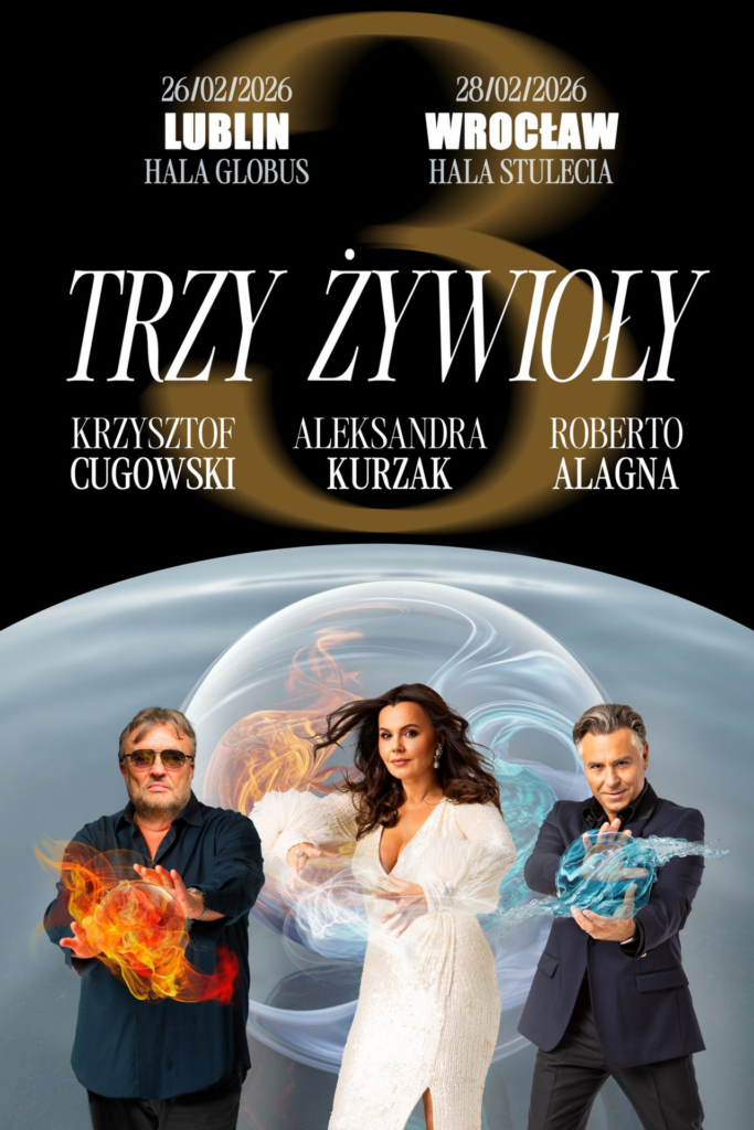 Są jak ogień, woda i powietrze – i już niebawem spotkają się na jednej scenie. Aleksandra Kurzak, Krzysztof Cugowski i Roberto Alagna zapraszają na dwa wyjątkowe koncerty, które połączą fanów rocka i opery. Trzy Żywioły już w lutym zawitają do Lublina i Wrocławia.